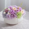 ■素材:プリザーブドフラワー:ローズ、カーネーション、アジサイ、他/ドライフラワー/ハンドメイドフラワー/陶製花器/クリアケース入り