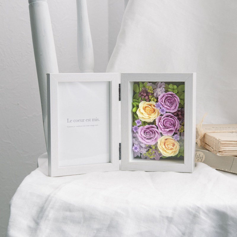 大切な思い出をずっと残しておきたい。そんな想いを叶えてくれるのが、フラワーフォトフレームです。本のように開くバラのフレームは、毎日蓋を開くたびに色鮮やかなバラの花々と素敵な思い出が出迎えてくれます。