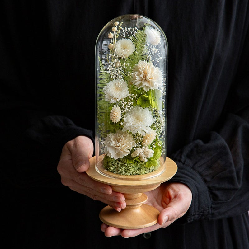 ガラスの中では、時間を切り取った花々が、穏やかに咲き続けます。