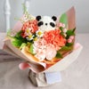 まあるいフォルムが愛らしい、お花のぱんだ“Pandy”は、ピンポンマムに、つぶらな瞳と丸い耳。おっとりした表情が、見ているだけでほっこりします