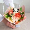 ラッピングの中にはお花に必要な栄養と抗菌剤を含んだ保水ゼリーが入っているので、ラッピングそのままで水やり不要。そのまま飾れる生花の花束としてお楽しみいただけます。