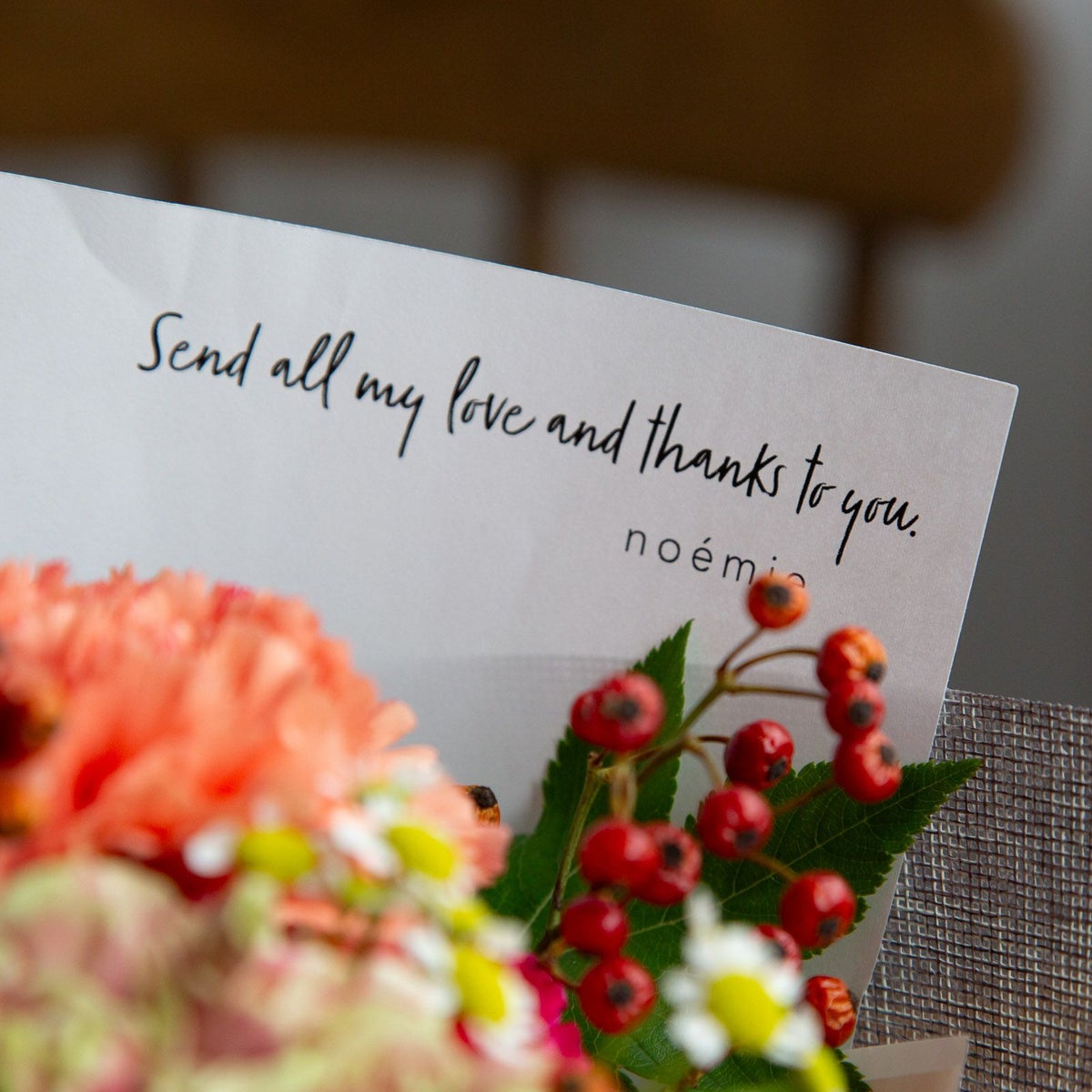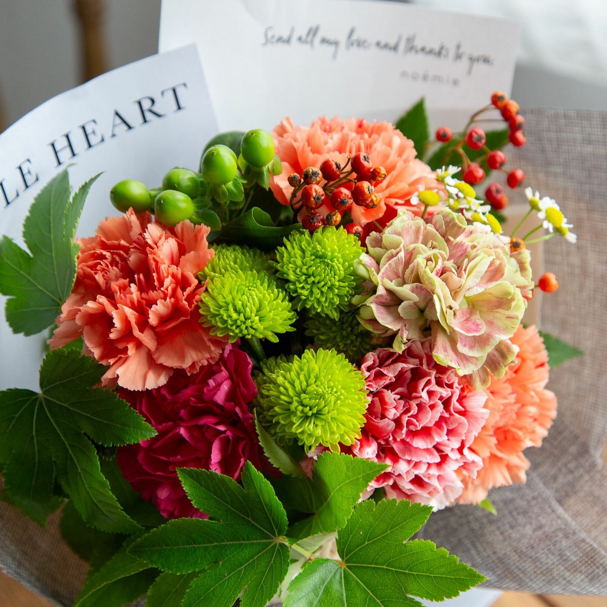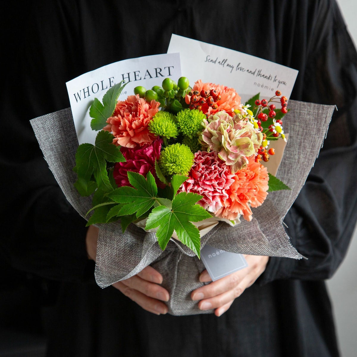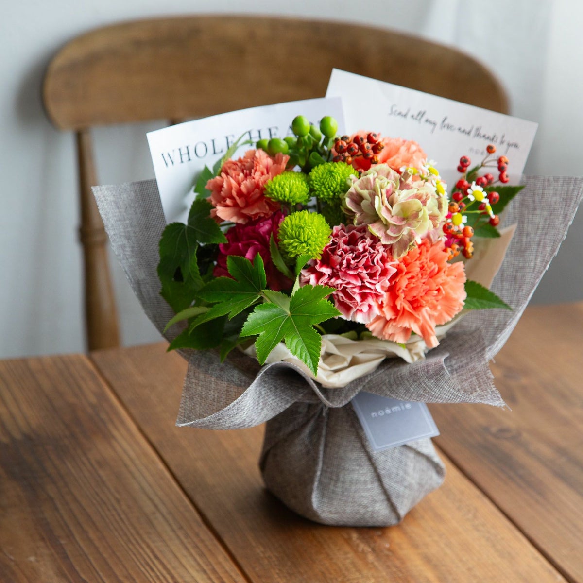 さりげなく想いを伝えてくれるメッセージを添えて 【9~11月】そのまま飾れる秋のメッセージブーケ(L)/オレンジ