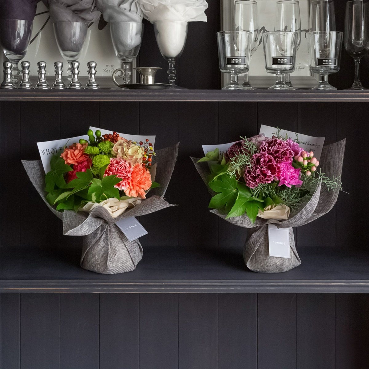 花瓶も水やりも不要! 秋香る大人のオータムブーケ 【9~11月】そのまま飾れる秋のブーケ(M)/ピンク