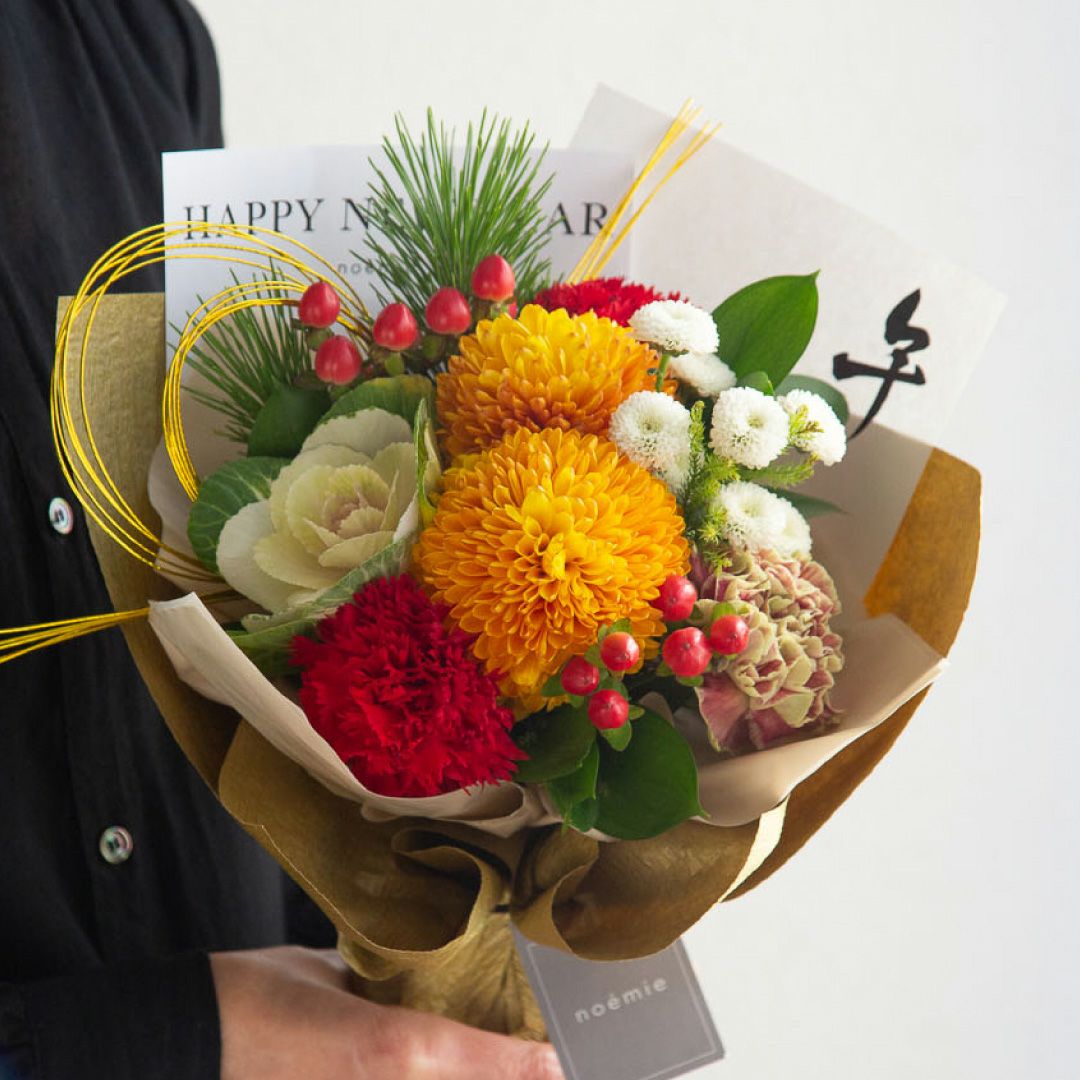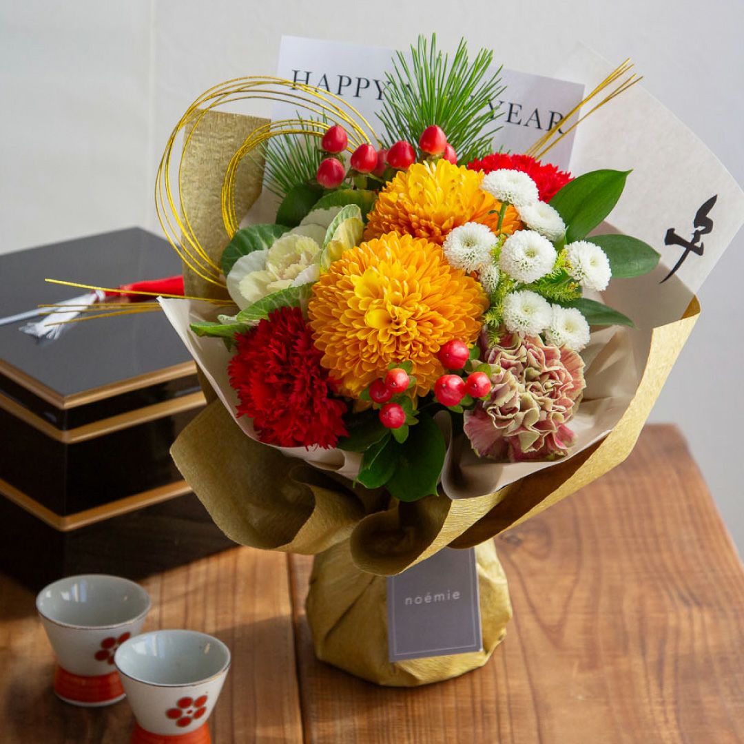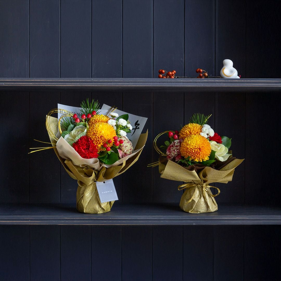 花瓶も水やりも不要! そのまま飾れるお正月ブーケ/招福 【正月】そのまま飾れる花束(M)/招福