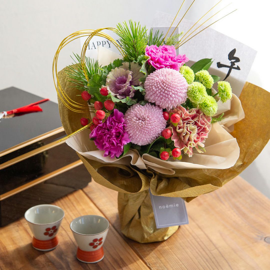 花瓶も水やりも不要! そのまま飾れるお正月ブーケ/雅 【正月】そのまま飾れる花束(M)/雅