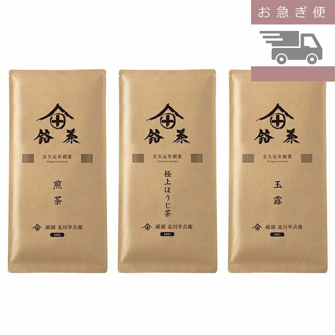 歴史と実績がある『北川半兵衞商店』の中でも、特に人気の 高い3種の日本茶をセレクトし、みなさまに味わって頂くこ とで、和の心と至高のひとときをお楽しみ頂けたら幸いです。