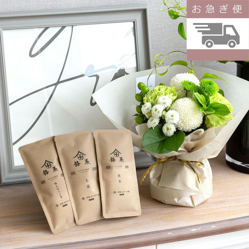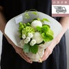 花瓶いらず、水換え不要 届いた状態のまま飾れる不思議な花束 【お急ぎ便】日本茶+そのまま飾れる菊てまりブーケ(M)/白