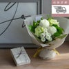 桜のお線香とそのまま飾れる花束とのセットギフト。 【お急ぎ便】桜のお線香+そのまま飾れる菊てまりブーケ(M)/白