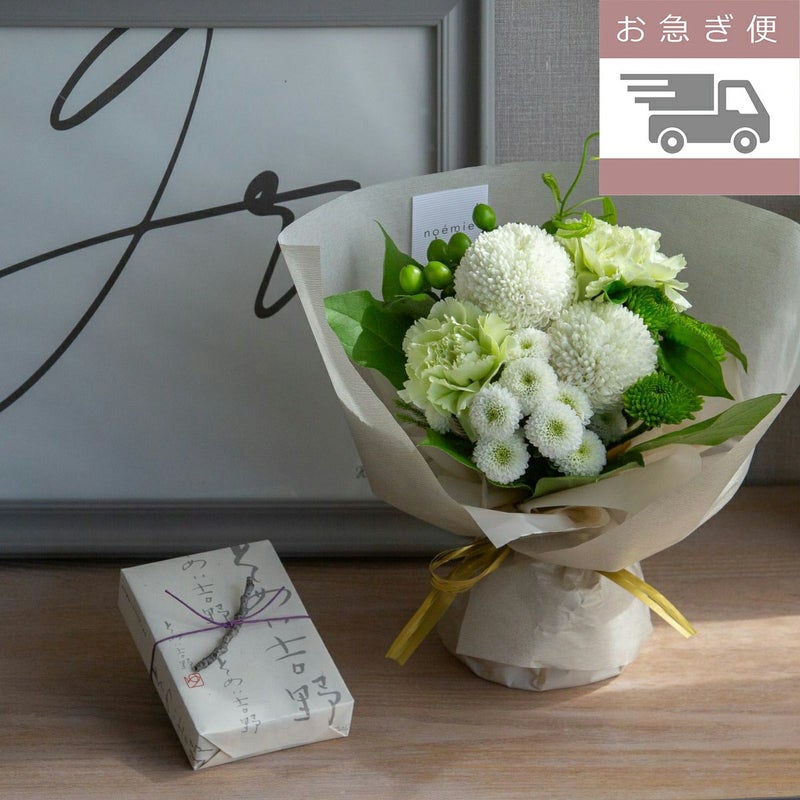 ※本品は、花束とお線香を同梱の上、配送させていただきます。ただし、他の商品と同梱しての配送は、花の品質保持の理由により出来かねますので、ご了承ください。