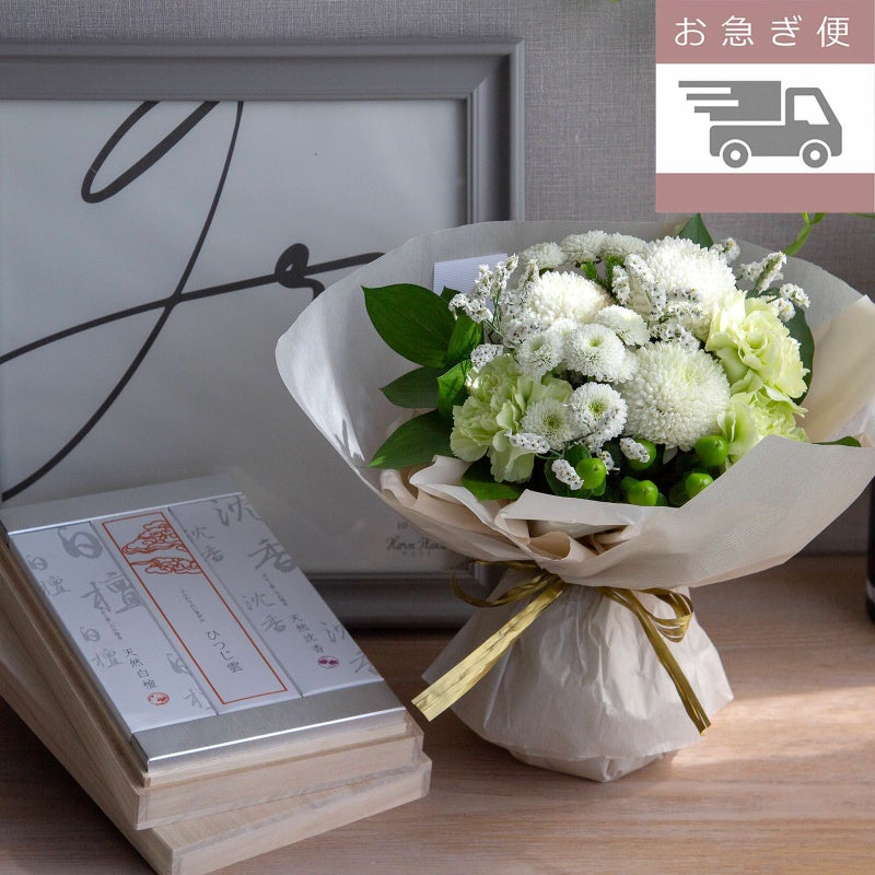 ご遺族への配慮から、ラッピングを解かずに飾れる“そのまま飾れる花束”をおすすめします。