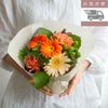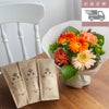 プレゼントに人気のガーベラを使った そのまま飾れる大人ナチュラルな花束 【お急ぎ便】日本茶+そのまま飾れるナチュラルブーケ(M)/オレンジ