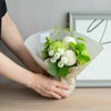 花瓶いらず、水換え不要 届いた状態のまま飾れる不思議な花束 【お盆用】そのまま飾れる菊てまりブーケ(M)/白