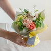 ラッピングの中にはお花に必要な栄養と抗菌剤を含んだ保水ゼリーが入っているので、ラッピングそのままで水やり不要。そのまま飾れる生花の花束としてお楽しみいただけます。
