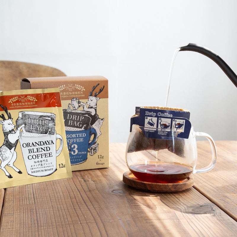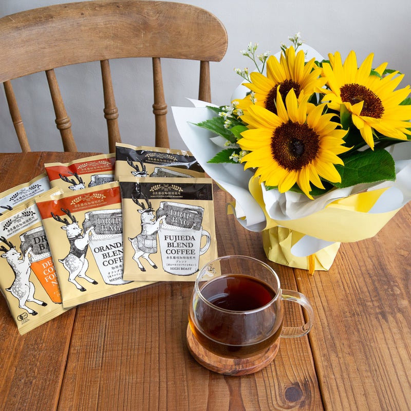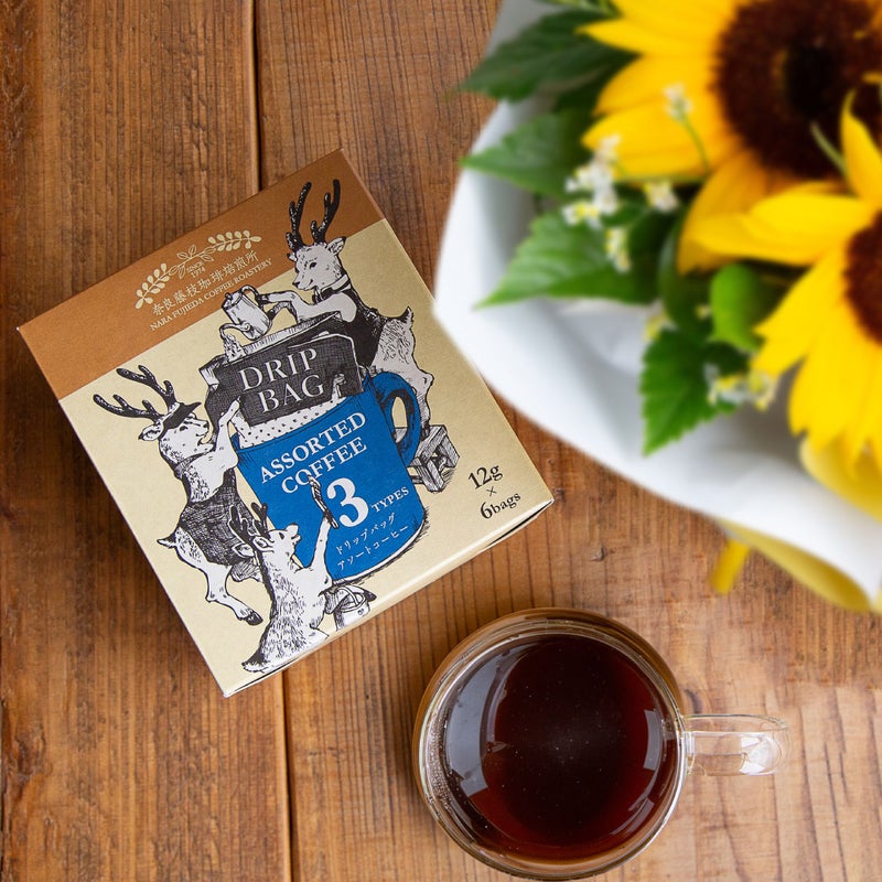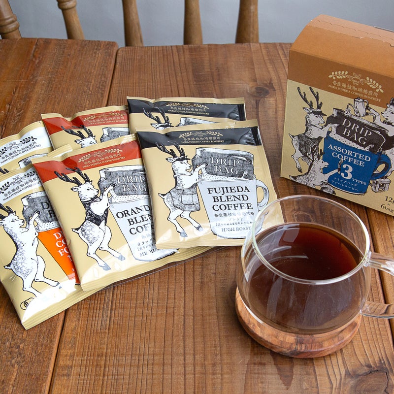 奈良で50年の卸売実績をもつ奈良藤枝珈琲焙煎所による、3種類のドリップコーヒー。最高品質の珈琲豆を、贅沢にたっぷりと使用しています。