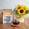 ■素材:生花(ひまわり3本、グリーン、小花 他)/エコゼリー、ラッピングペーパー、ラフィア、取扱説明カード