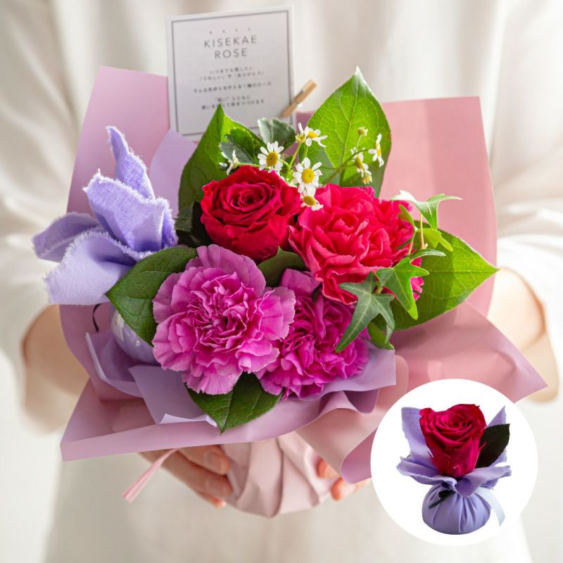 花束をそのまま飾って枯れないローズを着せかえて 【母の日】きせかえローズ(M)/ネオン香りのサシェ付