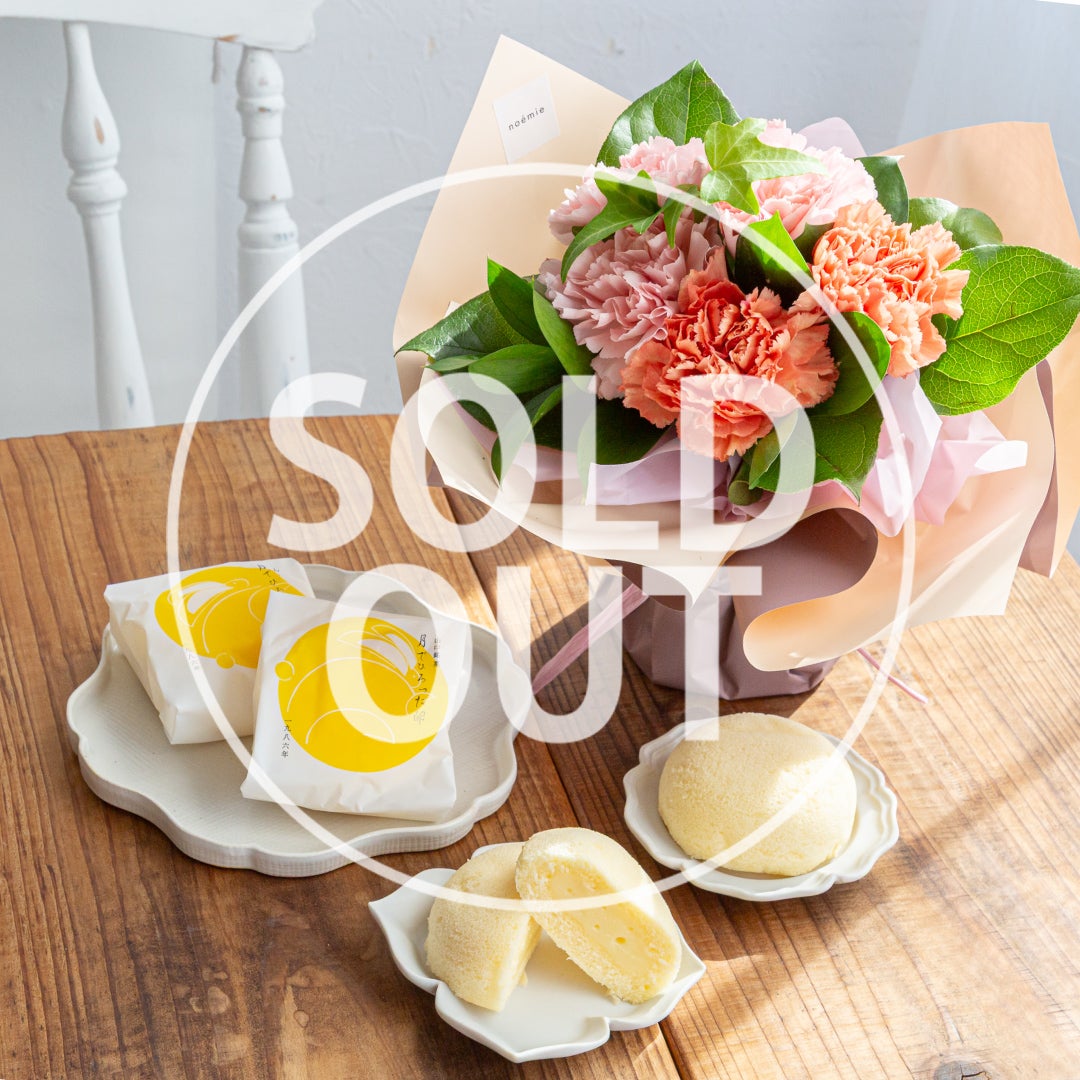 美しさとおいしさ、両方で喜ばれる母の日の贈りもの。 【母の日】果子乃季“月でひろった卵”+そのまま飾れる花束セット