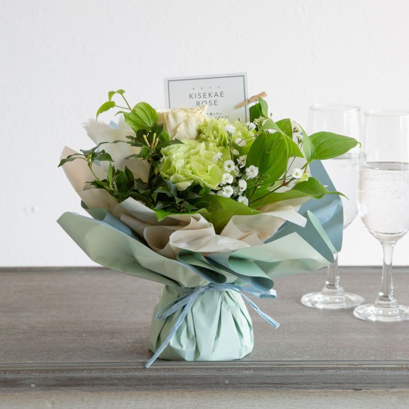 【花束について】 ●プリザーブドローズと生花を組み合わせた商品のため、色・姿・形には個体差がございます。●小花と葉物はその時期に応じた旬の素材をセレクトしますので、写真と内容が異なります。●足元に保水ゼリーと栄養剤を入れておりますので、ラッピングは外さずそのまま飾ってお楽しみください。水やりの必要はありません。●高温多湿の環境下に長く置きますと、カビや害虫の被害が考えられますので、なるべく乾燥した場所においてください。