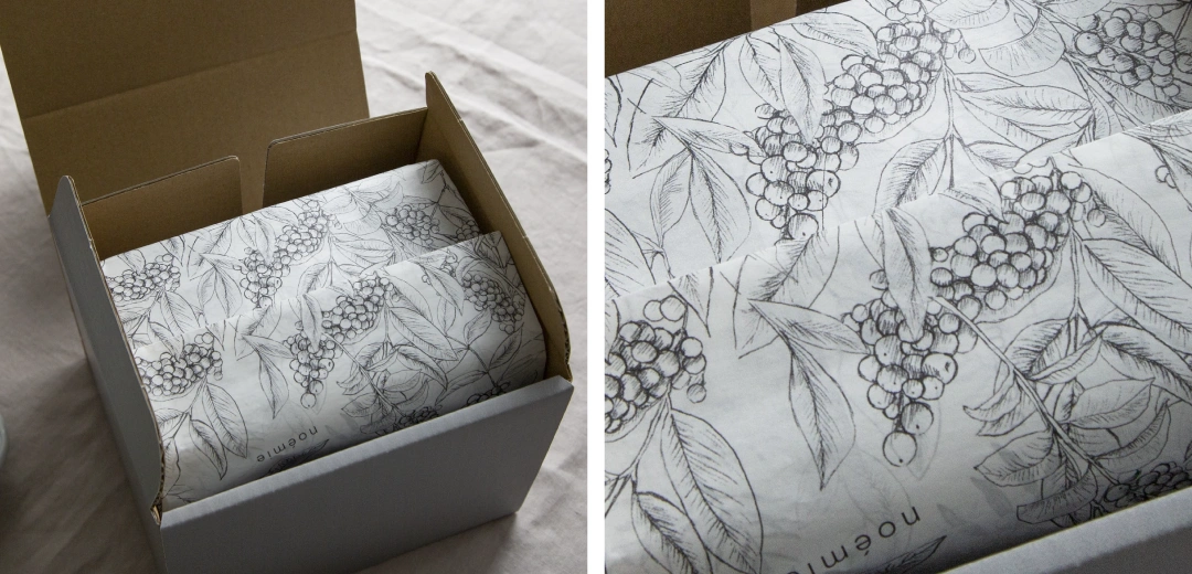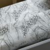 アレンジはケースに収め、4面を上質なグレイのペーパーで丁寧に包みました。サテン地のゴールドリボンとブランドタグ、プリザーブドグリーンのアクセントで、華やかで上品な仕上がりに致しました。