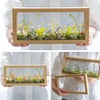 ■素材:プリザーブドフラワー:アジサイ、ラスカスなど/ドライフラワー:スターフラワー、クリスパムなど/木製フレーム(MDF)/ガラス、PET板