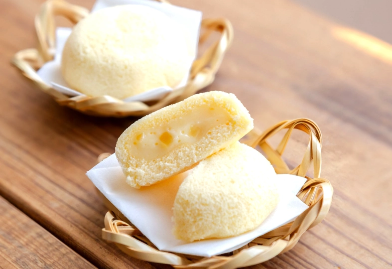 内閣総理大臣賞を受賞した、名水仕立ての和スイーツ。ふわふわ生地に和栗とミルクのやさしい甘さが広がります。