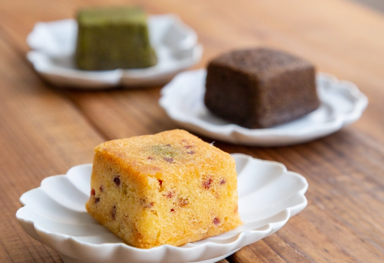 150年続く宇治の老舗が手がける、香り豊かな宇治茶の和スイーツ。抹茶・玄米茶・ほうじ茶、三種の味わいが楽しめます。 -