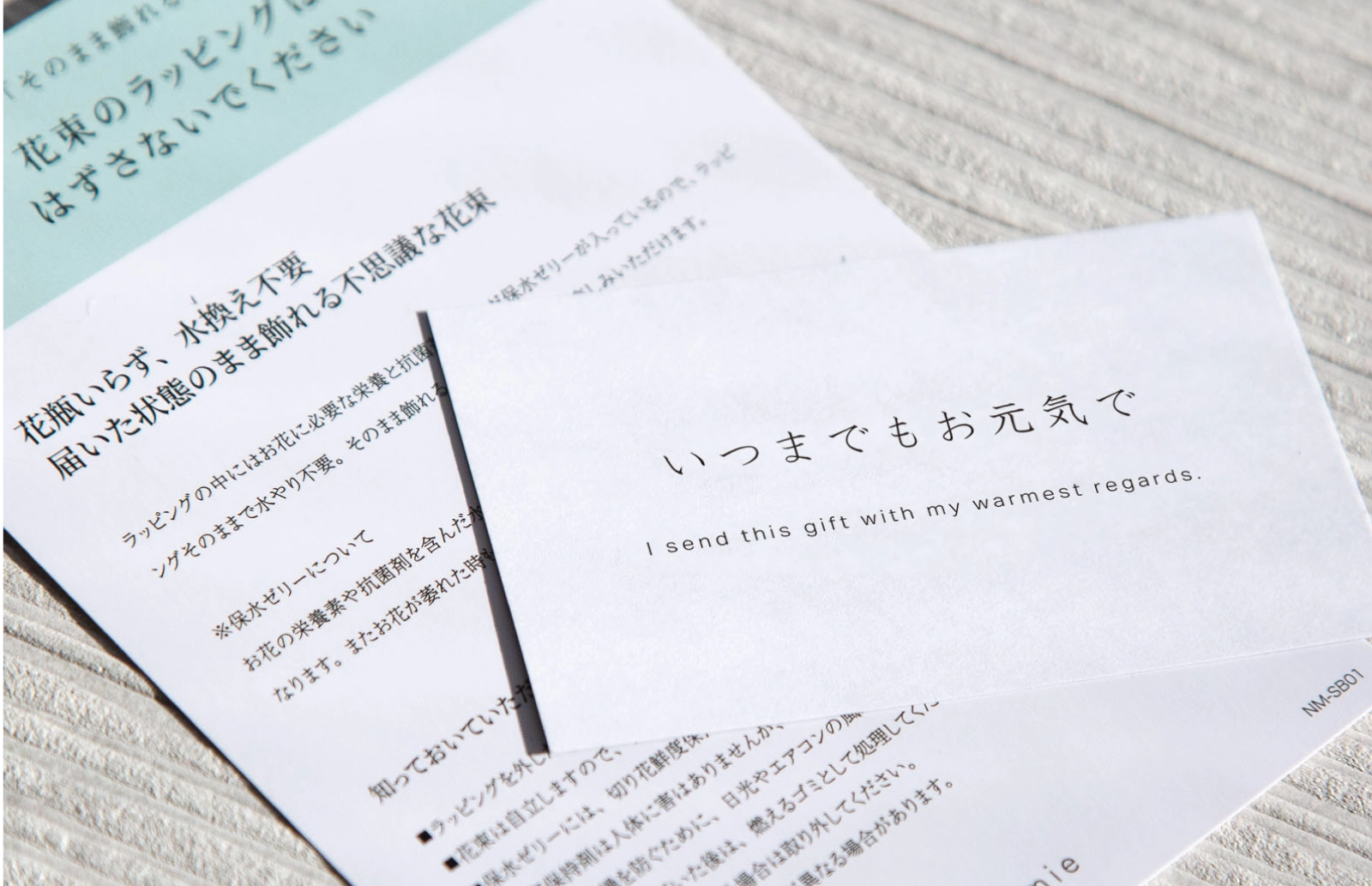 定型メッセージカードもお選びいただけますので、お好みに合わせてご選択ください。