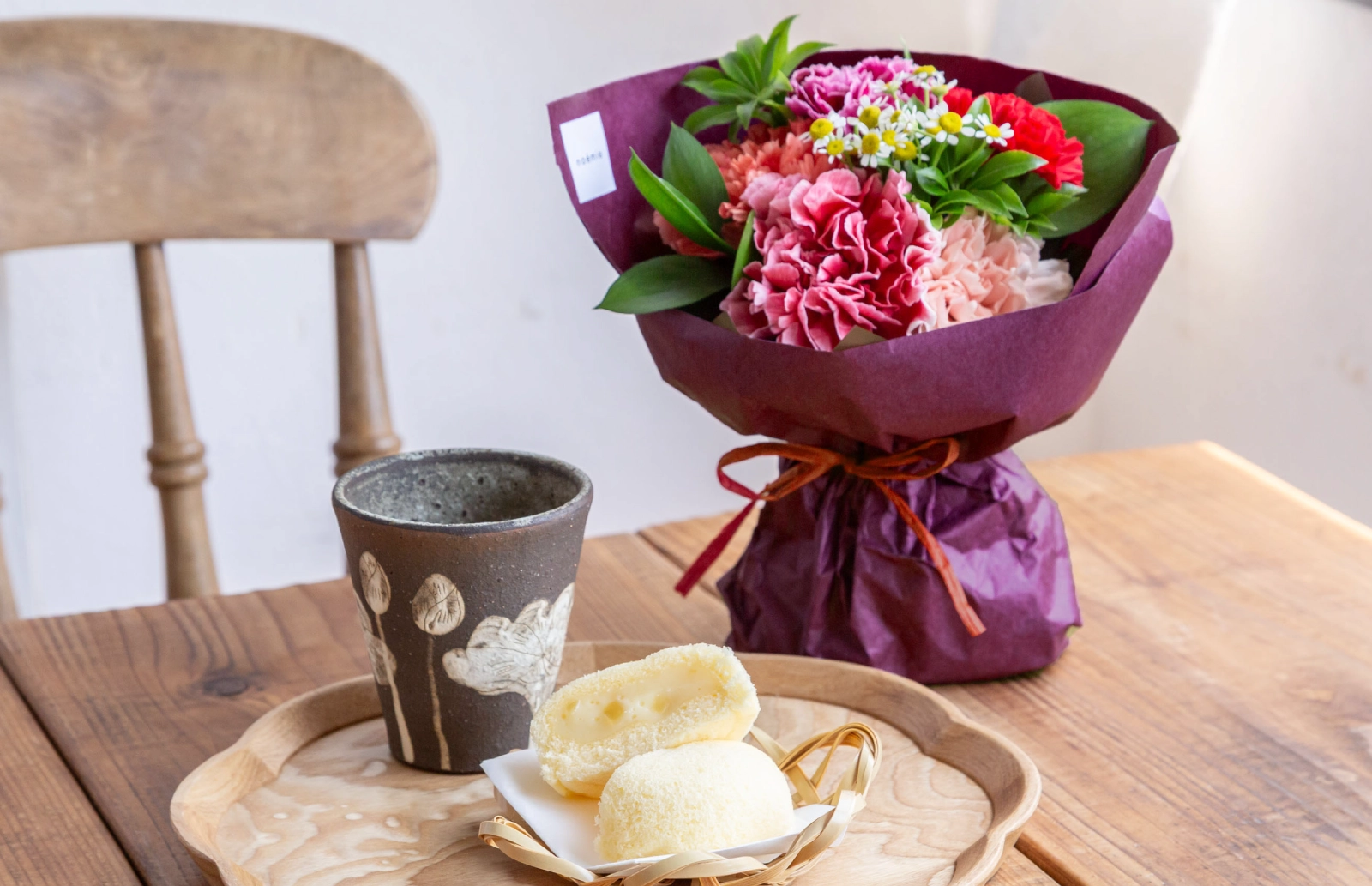 「花だけでは物足りないかも」と思ったら、花束にお菓子やお茶を添えてみてはいかがでしょうか?