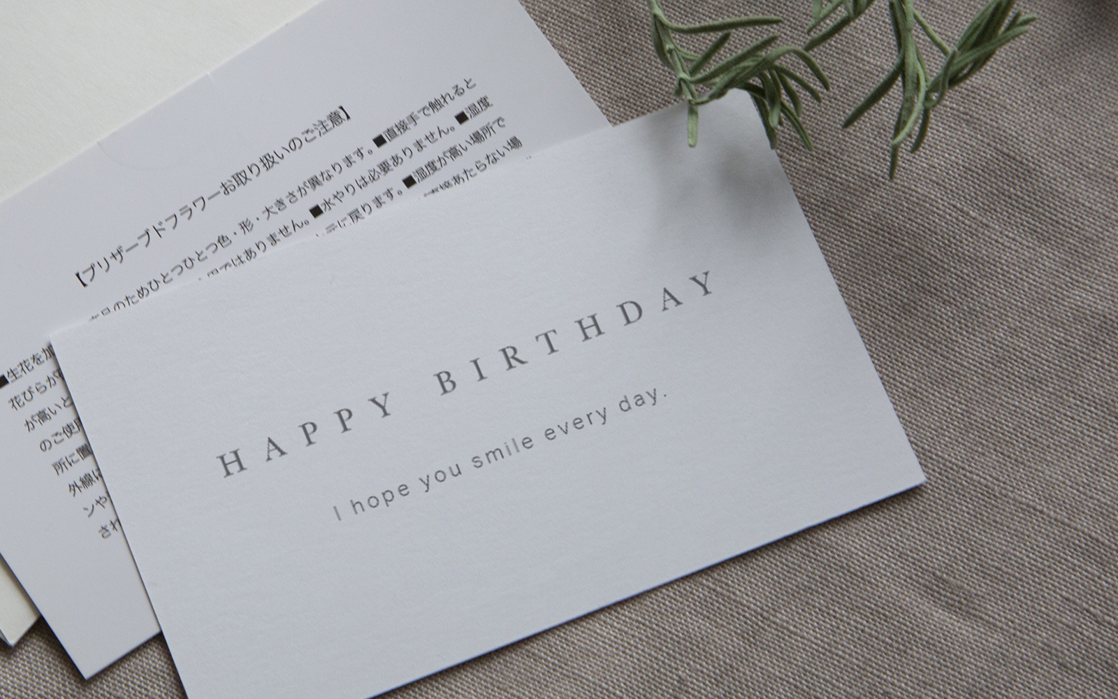 ●ご注文の際に、フリーメッセージ印字カード以外のカードを選択されたとしても、入力欄にメッセージを入力され た場合は、フリーメッセージ印字カードを商品に同梱してお送りいたします。