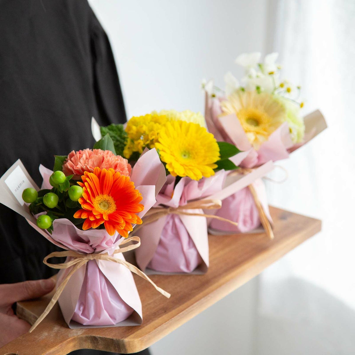 他の画像を見る 小さいけれど、ひとりひとりへの想いが詰まった心に残る花束セットが、卒園式や送別会、結婚パーティーの1.5次会や発表会など、特別な瞬間をより美しく彩ります。※1個 1,100円(税込)で追加可能(最大15個まで) そのまま飾れる小さな花束の詰め合わせ(5個入)※追加可能 人気商品 当店特別価格 ¥ 5,700 税込 お気に入りに登録する