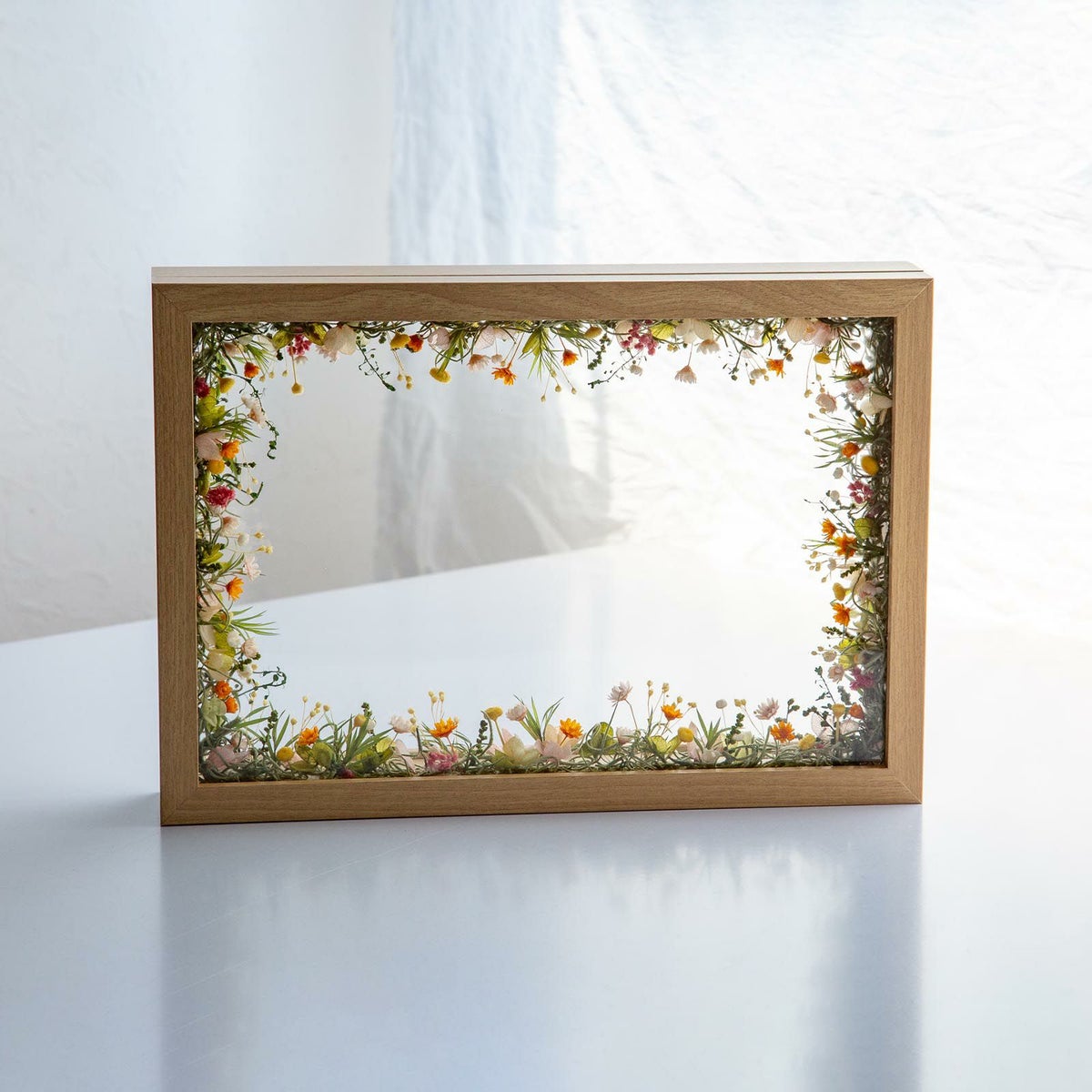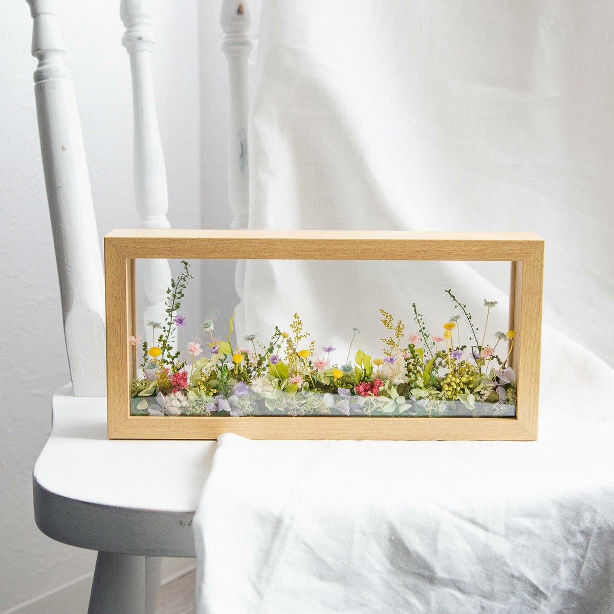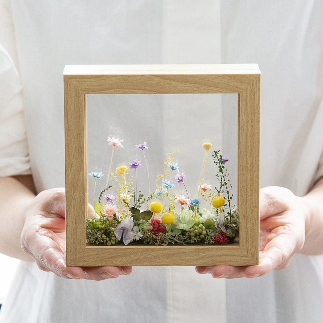 他の画像を見る 窓から見える、一面に咲き誇る花の草原をイメージしました。まるで美しい風景を切り取ったかのようなフレームアレンジメントです。 ミルフルール(M) 当店特別価格 ¥ 7,000 税込 お気に入りに登録する