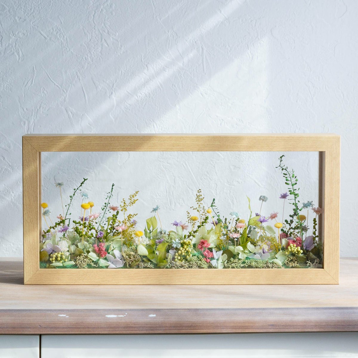 他の画像を見る 窓から見える、一面に咲き誇る花の草原をイメージしました。まるで美しい風景を切り取ったかのようなフレームアレンジメントです。 ミルフルール(L)/ブルー 当店特別価格 ¥ 11,200 税込 お気に入りに登録する