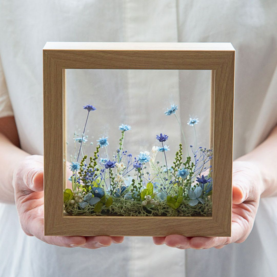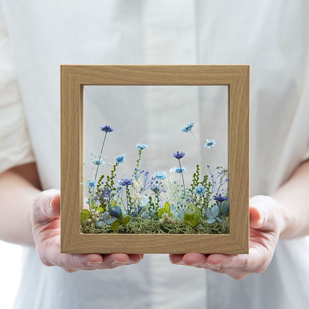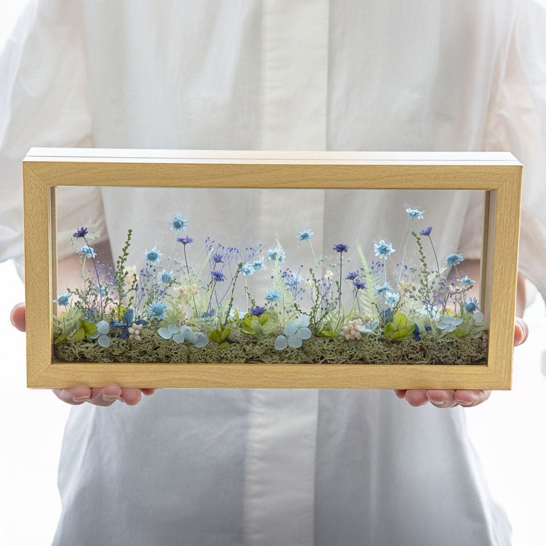 他の画像を見る 窓から見える、一面に咲き誇る花の草原をイメージしました。まるで美しい風景を切り取ったかのようなフレームアレンジメントです。 ミルフルール(M)/ブルー 当店特別価格 ¥ 7,000 税込 お気に入りに登録する