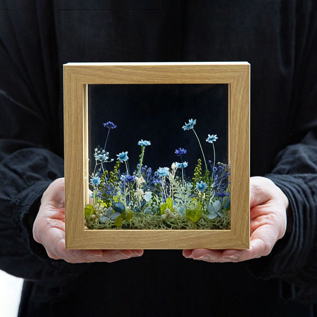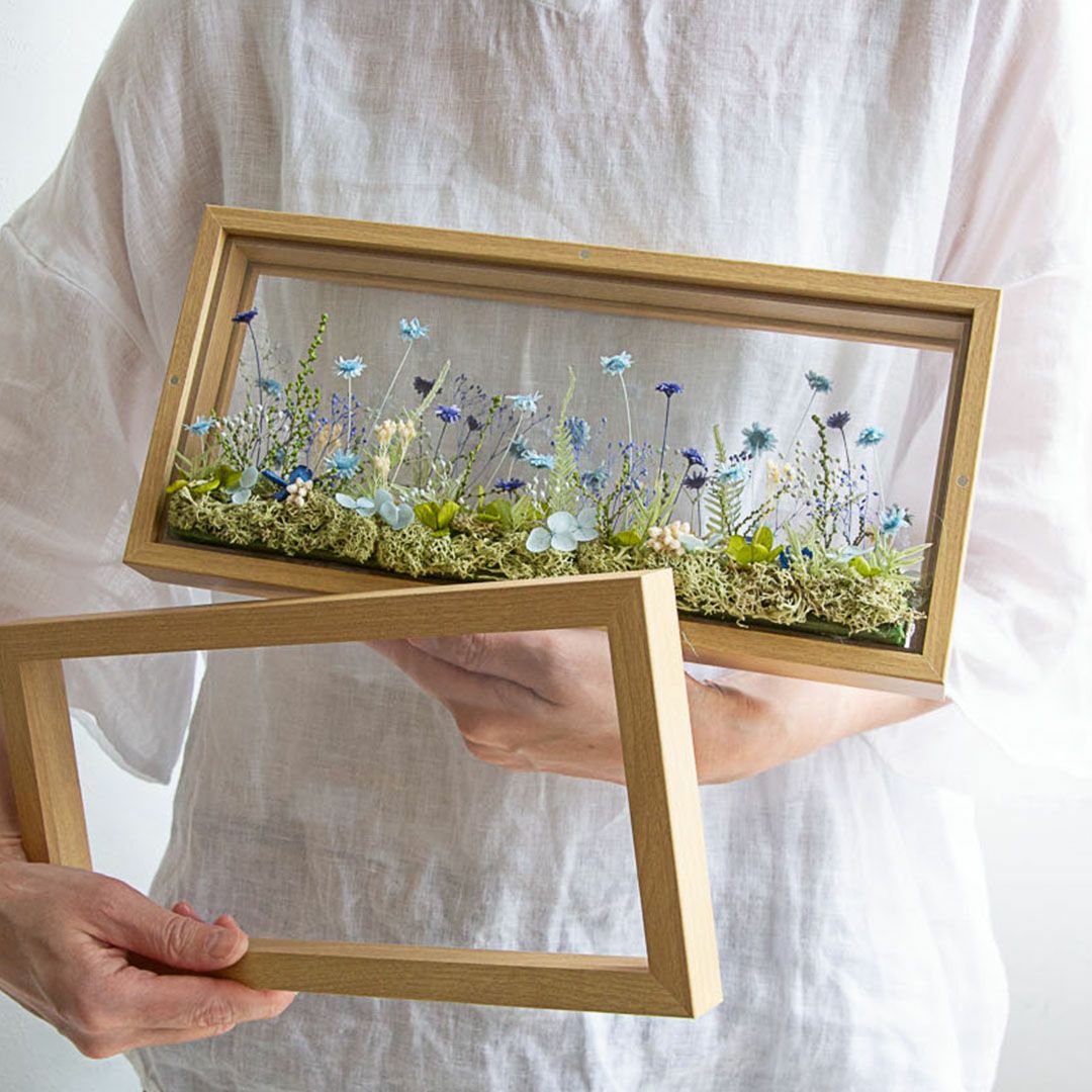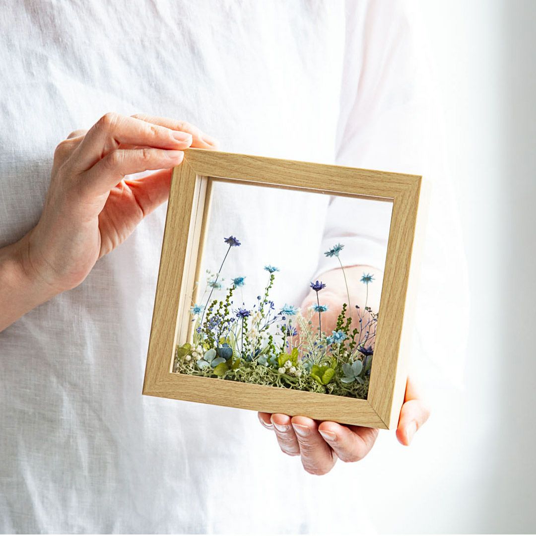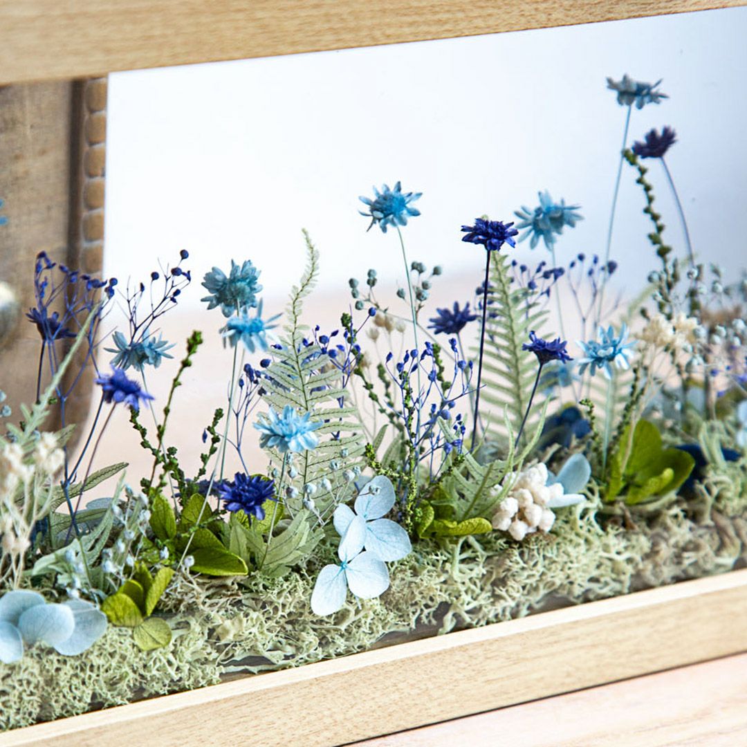 他の画像を見る 窓から見える、一面に咲き誇る花の草原をイメージしました。まるで美しい風景を切り取ったかのようなフレームアレンジメントです。 ミルフルール(M)/ブルー 当店特別価格 ¥ 7,000 税込 お気に入りに登録する