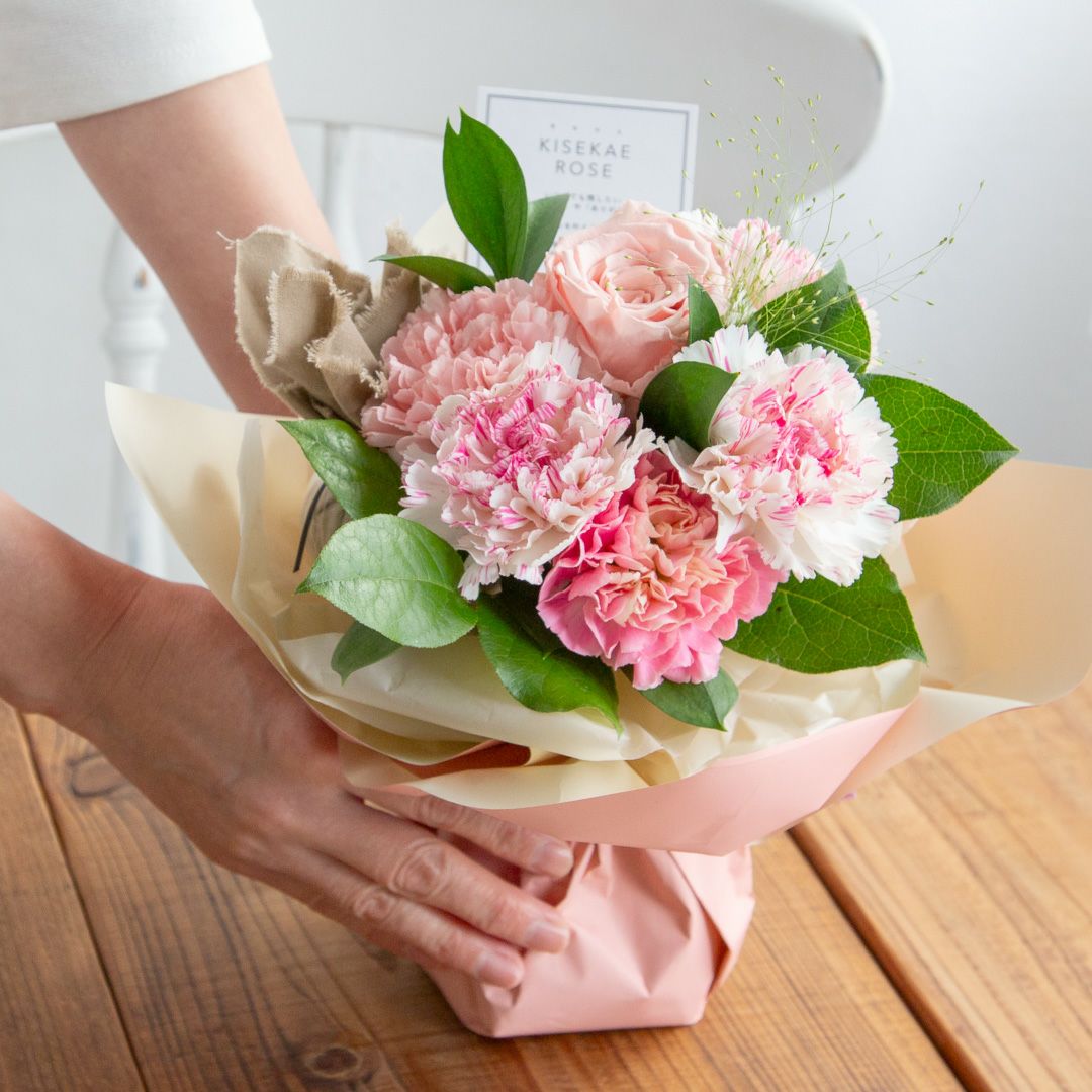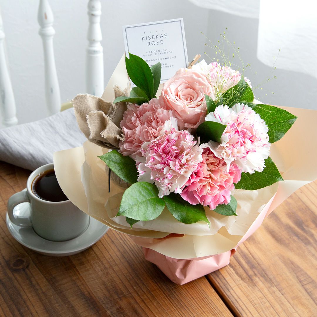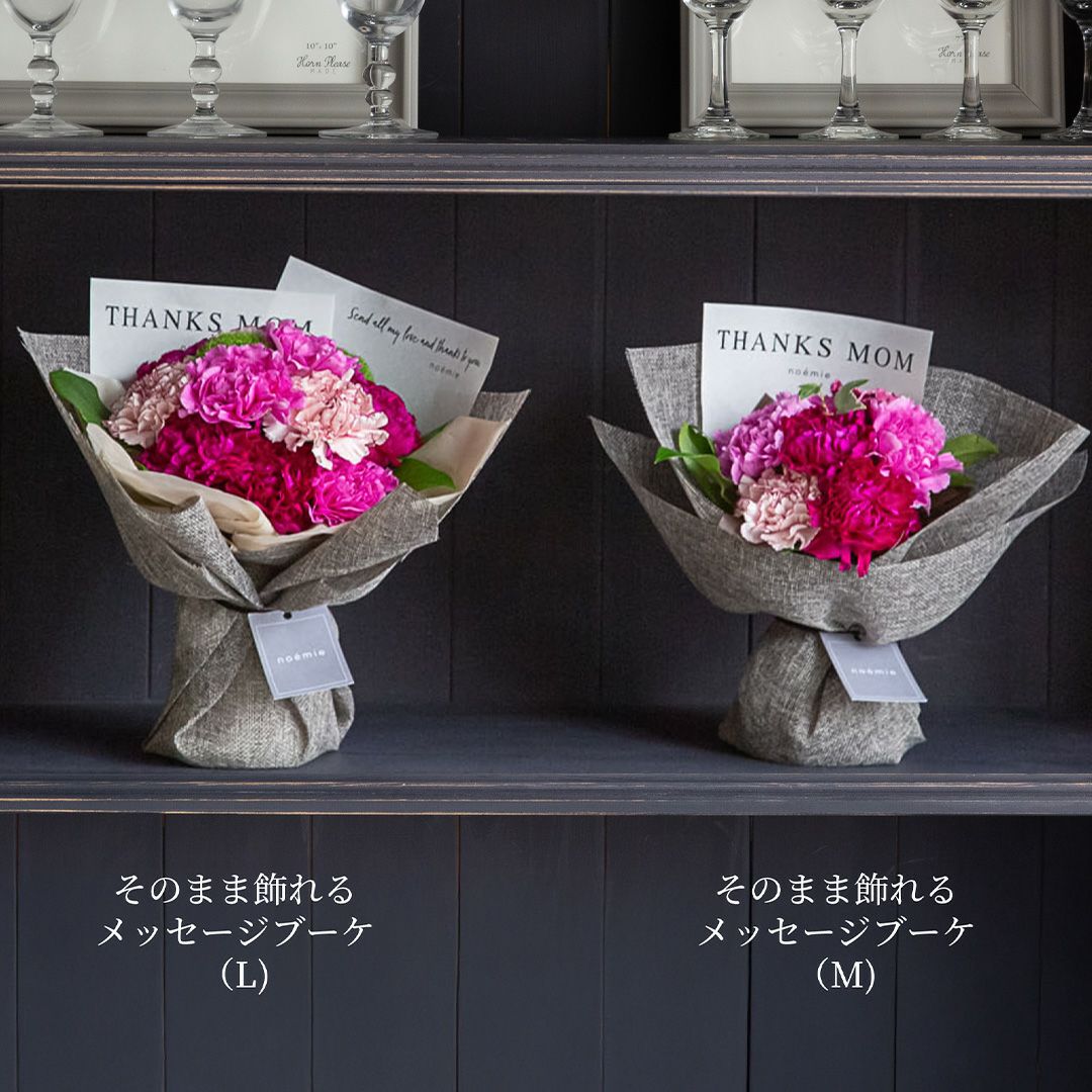 他の画像を見る カーネーションの花言葉にフォーカスした母の日人気No.1の花束。 【母の日】そのまま飾れるメッセージブーケ(M)/ピンク 当店特別価格 ¥ 4,400 税込 販売期間 2026/03/09 10:00 〜 2026/05/08 10:00 お気に入りに登録する