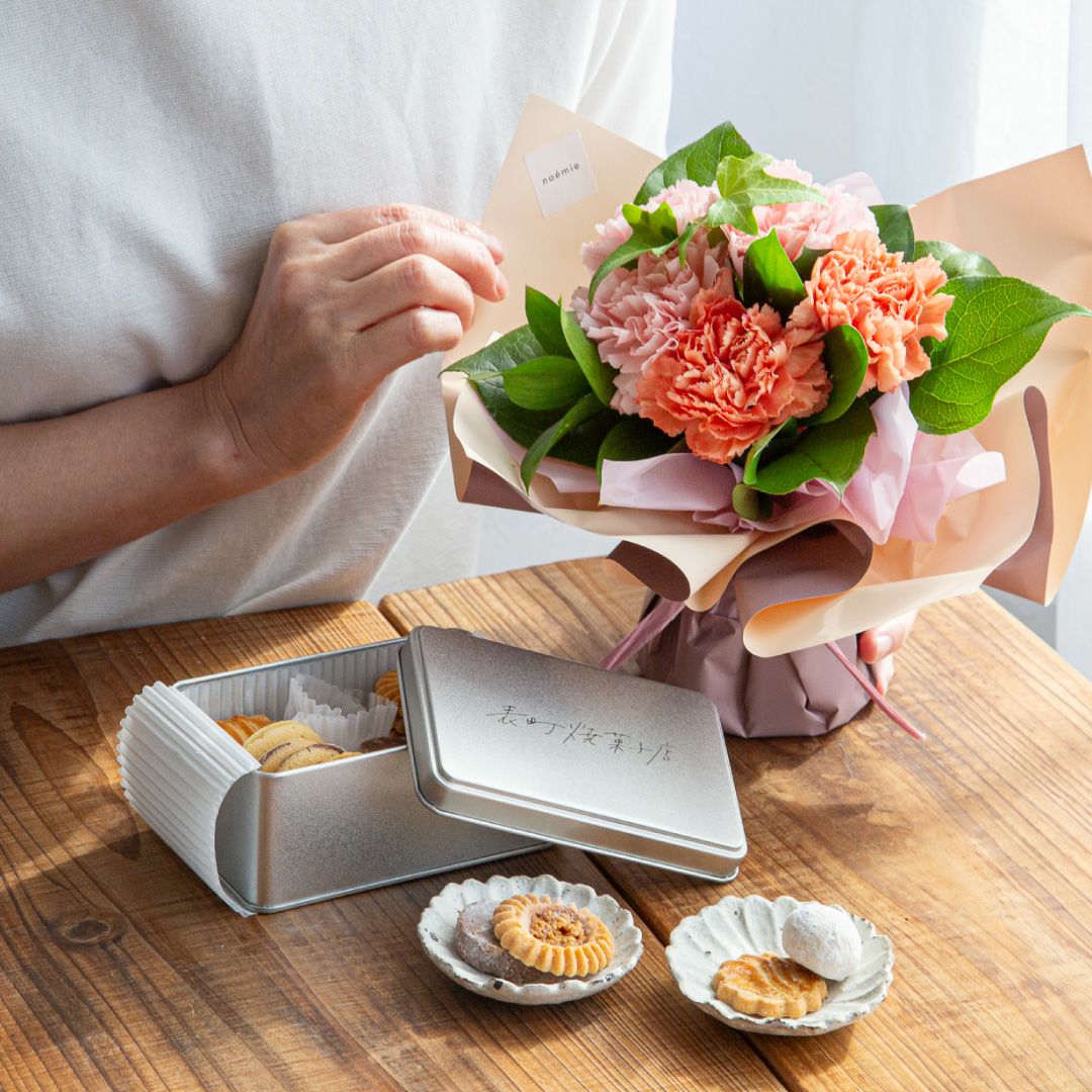 他の画像を見る 箱を開けたとき、頬がゆるむ。美しさとおいしさ、両方で喜ばれる母の日の贈りもの。 【母の日】表町焼菓子店クッキー缶+そのまま飾れる花束セット 当店特別価格 ¥ 7,150 税込 販売期間 2026/03/09 10:00 〜 2026/05/08 10:00 お気に入りに登録する
