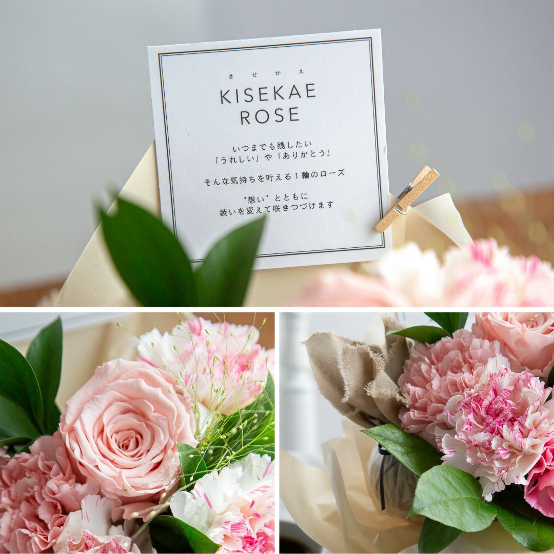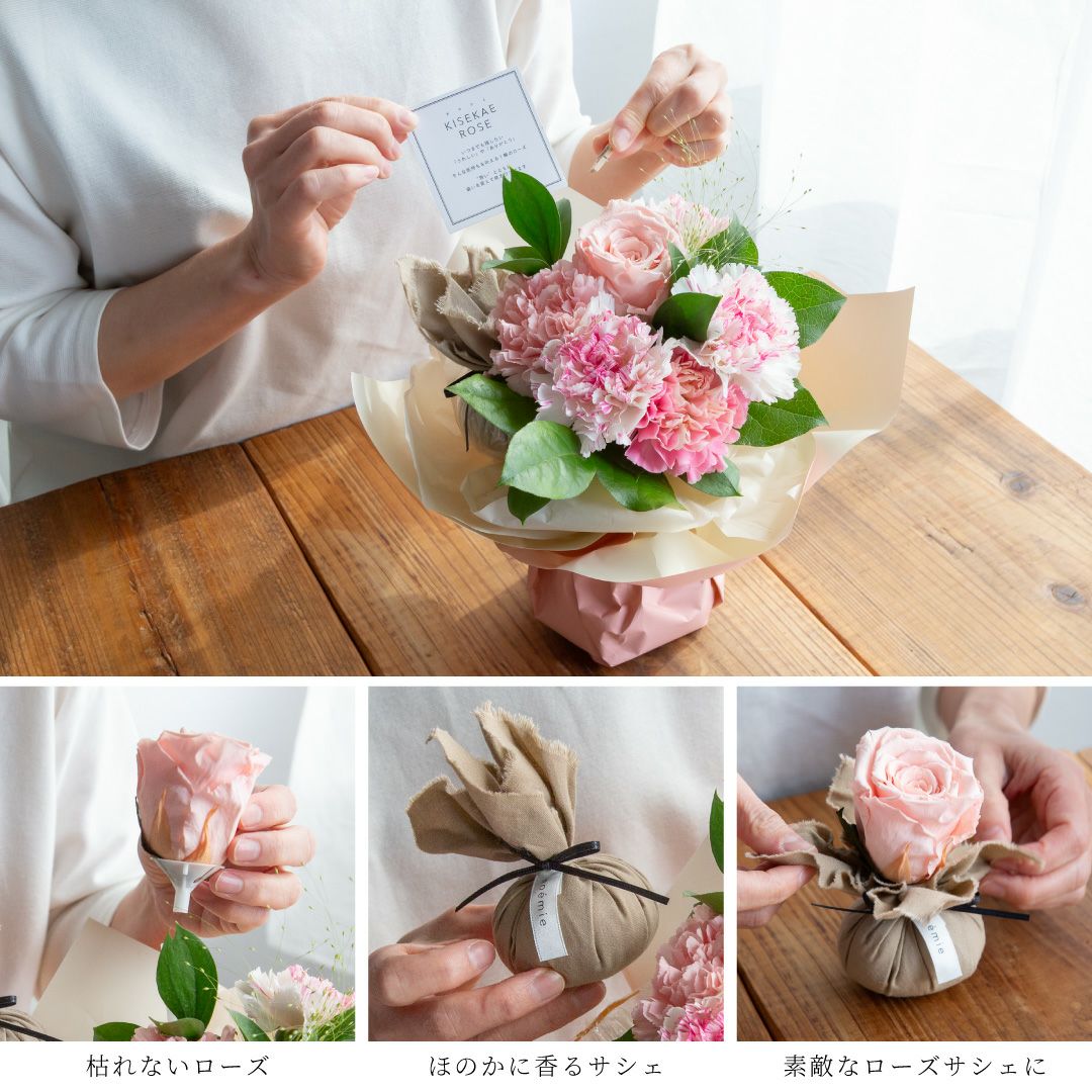 他の画像を見る 花束をそのまま飾って枯れないローズを着せかえて 【母の日】きせかえローズ(L)/コットンピンク香りのサシェ付 当店特別価格 ¥ 6,600 税込 販売期間 2026/03/09 10:00 〜 2026/05/08 10:00 お気に入りに登録する