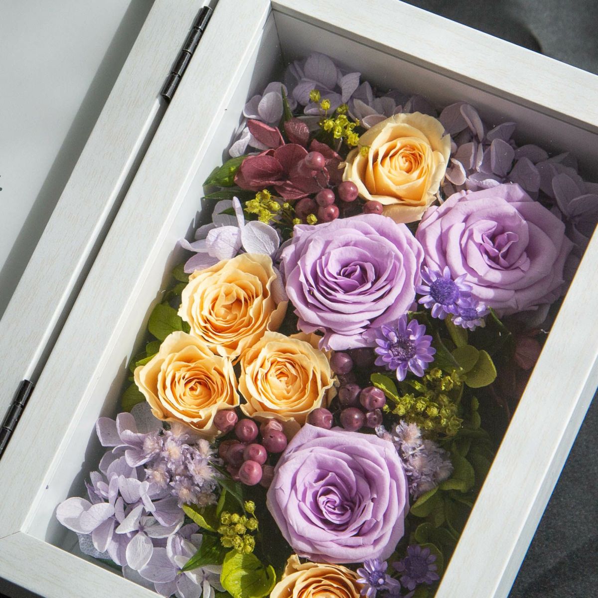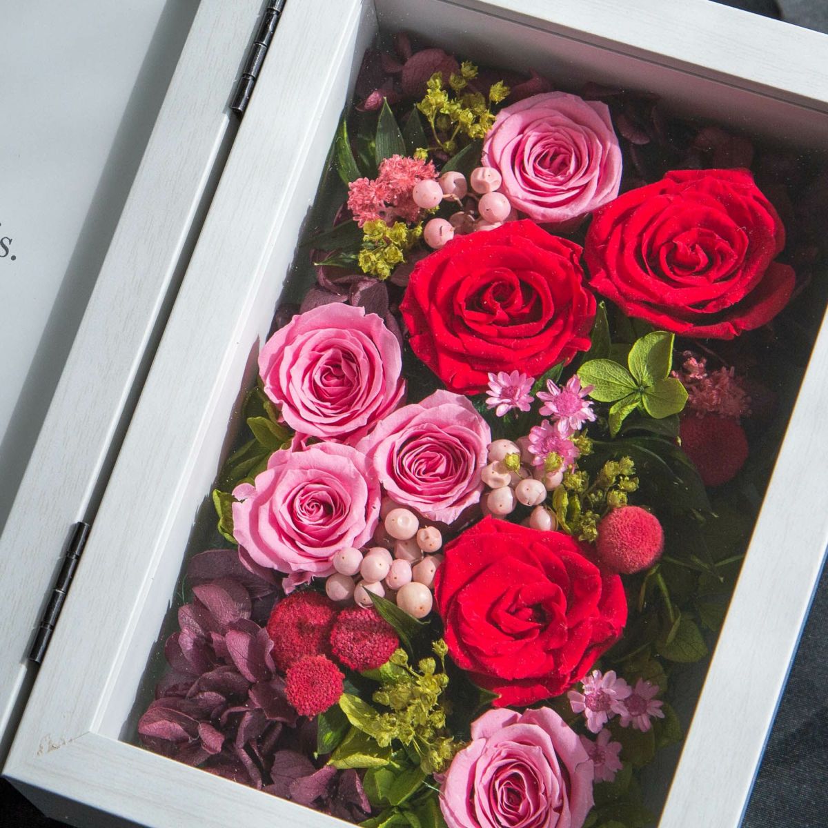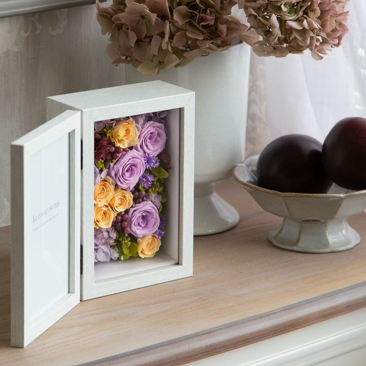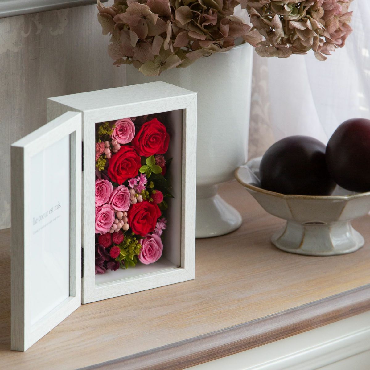 花言葉は「尊敬」「平和」。本のように開くバラのフレーム